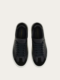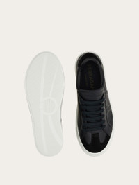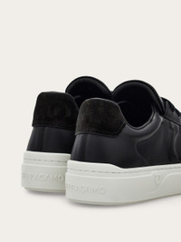 Inspired by vintage styles, this new low-cut sneaker features a leather upper with texturized suede details. At the side, contrasting trims and a maxi Gancini add a high-end street style note. Ultra-light rubber cassette sole for excellent cushioning with shock absorption. - Composition: calfskin - Made in ITALY - Product code: 02A615 790066