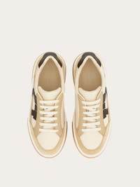 Showcasing an enticing array of textures, this 90’s inspired sneaker is high-end street style at its best. Made of smooth calfskin, the upper features both hammered leather and suede inserts with a bold contrasting leather Gancio on the side. The ultra-light rubber sole has a custom tread. - Composition: smooth, hammered and suede calfskin - Made in ITALY - Product code: 023588 778891
