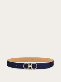 Exuding smart-casual sophistication, this belt is beautifully crafted from supple calf suede. Notice the softly rounded Gancini buckle in the ruthenium finish that brings a modern twist to the signature silhouette. The adjustable length allows for a more personalized fit and style. We invite you to check our size guide for more information. - height 1.3 IN - Composition: calfskin suede - Made in ITALY - Product code: 679955 782990