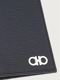 Subtle, elegant and functional. This striking wallet is made of hammered calfskin leather decorated with a metal Gancini on the front. The interior is in contrasting tones and is perfectly organized to hold you essentials; there are slots for credit cards and banknotes and a flat pocket for documents. The tanning of the leather is done without the use of metals to ensure a lasting tone while reducing the impact of production on the environment. The sewing thread is made from 100% post-consumer certified recycled PET. - height 9.0 CM / 3.5 IN length 11.0 CM / 4.3 IN - Composition: metal free hammered calfskin - Product code: 66A063 744850 - Made in ITALY