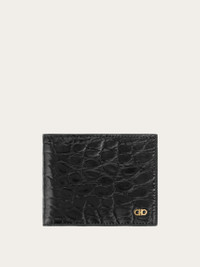 With its outer panels in alligator leather, this new Ferragamo wallet has a decidedly luxurious look, echoed by the golden Gancio applied to the bottom corner. Inside, the calfskin lining has several card slots, and a large slot for banknotes. - height 3.3 IN length 4.3 IN - Composition: alligator - Made in ITALY - Product code: 661451 787140