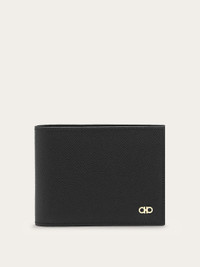 Hammered to enhance its natural grain, the soft calfskin leather of this new Ferragamo bifold wallet is punctuated by a small golden Gancio on the front. It opens to reveal an organized interior, with several card slots and a long wide pocket for banknotes. - height 3.3 IN length 4.3 IN - Composition: hammered calfskin - Made in ITALY - Product code: 661451 775644