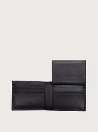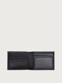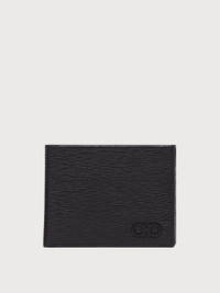 Impeccable practicality meets metropolitan style in this sleek Gancini wallet. Made of signature stamped calfskin leather with a striking texture, it has a smooth interior in a contrasting color. The lining is made up of well organized spaces such as bill compartments, credit card slots and a transparent identification pocket. The small metal Gancini on the front is a discreet symbol of style. - height 3.3 IN length 4.3 IN - Composition: stamped calfskin - Made in ITALY - Product code: 66A066 733347
