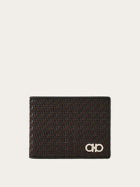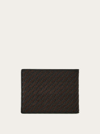 Ferragamo’s craftsmanship takes center stage in this timelessly constructed wallet. The exterior panel is crafted from woven calfskin and suede strings, creating a refined basketweave effect. Inside, thoughtful organization includes compartments, flat pockets, and card slots. A petite palladium-finish Gancini detail on the front adds a signature touch. - height 3.3 IN length 4.3 IN - Composition: calfskin and suede - Made in ITALY - Product code: 661703 786400