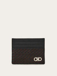 A compact cardholder with slots on both sides, accented by a palladium-finish Gancini detail on the front. The basketweave-effect insert is meticulously crafted on a loom with interwoven calfskin and suede strings in subtly contrasting tones, showcasing expert craftsmanship. - height 3.1 IN length 3.9 IN - Composition: calfskin and suede - Made in ITALY - Product code: 661708 786404