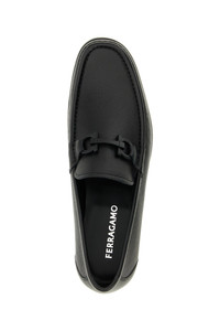 cod. 791770NERO 'Grandioso 2' hammered leather loafers with stitched tray, tone-on-tone metal 'Gancini' clamp detail on the front, tubular construction, rubber sole. Color: Black Size & Fit: US FERRAGAMO SIZE - EEE Fit Composition: 100% calfskin leather (Bos Taurus) Made in: Italy