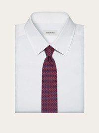 Gancios and hearts animate this pure silk tie adding a sense of whimsy to business looks. The tie is reversible, with a printed pattern of geometric Gancini and hearts on one side, and back to back hearts on the other. - Composition: 100% silk - Made in ITALY - Product code: 351259 784221