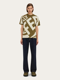 A bold graphic logo lights up this pure cotton t-shirt for an original look. The logo is a snippet of the iconic Venna logo designed for Ferragamo in the 1930’s revised in a contemporary key. The perfect piece for off duty chic. - Composition: 100% cotton - Made in ITALY - Product code: 122423 781245