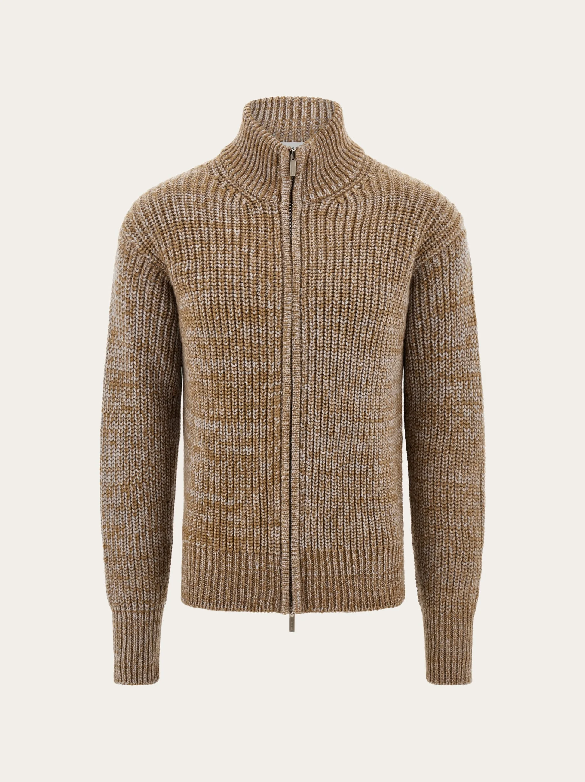 The English rib knit emphasizes the soft feel of this chunky cardigan. Made of pure virgin wool with a high collar and two way zip, this stylish cozy cover up transcends all seasons and trends. - Composition: 100% pure virgin wool - Made in ITALY - Product code: 144806 791046