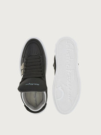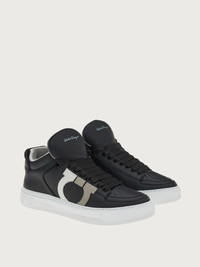 A cool new twist on the 90’s basketball boots, this mid top sneaker is perfect for connoisseurs of contemporary streetwear. The soft calf leather upper features contrasting inserts on the sides, which draw the iconic Gancini outline. Maxi tongue and ultra-light rubber sole, for a shoe that is the emblem of Ferragamo sporty chic. - Composition: calf leather - Made In ITALY