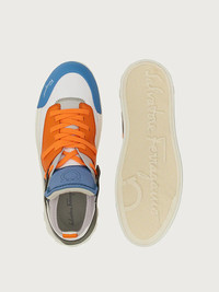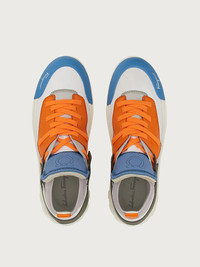 This one is a slam dunk! Basketball sneaker with an innovative construction made from soft, luxurious Italian nappa leather. The contrasting colors on the upper add a bold touch, while the inner sock in technical fabric adds a futuristic appeal. Dynamic and fresh, this shoe works well with casual looks or to bring a touch of street style to smart pants. - Composition: Nappa leather - Made In ITALY