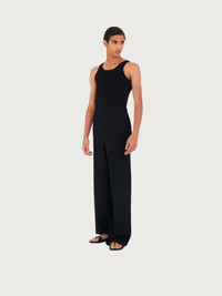 High waisted, relaxed fit, drawstring trouser made of technical viscose. Vertical slit pockets at the sides and a welt pocket at the back. - Composition: 55% viscose, 40% polyamide, 5% polyurethane - Made In ITALY