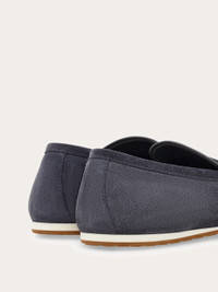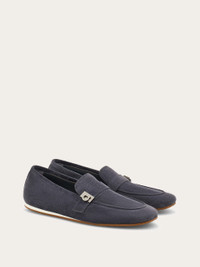 Blending elegance with ease, this new loafer is surprisingly flexible, thanks to its innovative construction and smooth lining. The sleek strap across the instep is accented with a ruthenium-tone Hug buckle on the side. Ultra-lightweight rubber sole with custom tread. - Composition: suede calfskin - Made in ITALY - Product code: 02A030 784368
