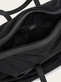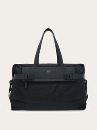 Cool, capacious holdall, perfect for the gentleman on the go. With a lightweight body and textured leather details, this new duffle bag is detailed with hammered leather Hug straps fastened with the iconic Hug buckle. The front zip pocket provides extra storage and the mid-length top handle is accompanied by an adjustable, removable jacquard shoulder strap. - height 11.8 IN length 23.6 IN width 8.6 IN - Composition: fabric and hammered calfskin - Made in ITALY - Product code: 241873 789805
