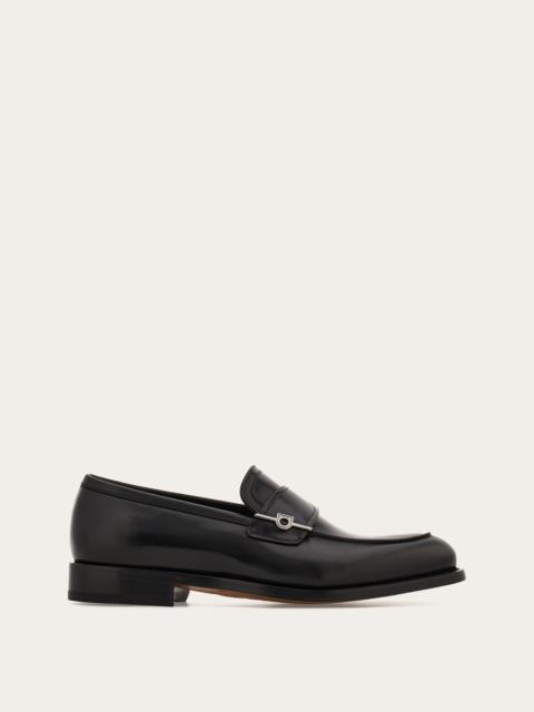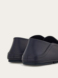 Exuding relaxed elegance with an urban appeal, this new driver loafer is made of smooth calfskin leather. Raised stitching around the vamp emphasizes the squared outline, while the saddle strap across the instep features a mini Gancio buckle in a titanium finish. The folding heel converts this easy slip on into a trendy mule. Custom rubber sole inspired by classic driver shoe. This shoe is made with the "Tubular" technique, an exclusive method applied by high end shoemakers, whereby the sole is hand-sewn to ensure a supple, flexible finish. - Composition: calfskin - Made in ITALY - Product code: 029473 778865