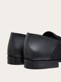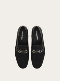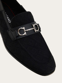 An all over Ferragamo monogram adds a bold twist to this cool gentlemen's loafer. The slightly squared tip and visible stitching around the tray complement the golden Gancio bit with side buckle. Red thread is used to stitch the lining, confirming an uptown look who’s relaxed appeal comes from the foldable heel. A flexible leather sole completes the design. - Composition: fabric - Made in ITALY - Product code: 029264 778974