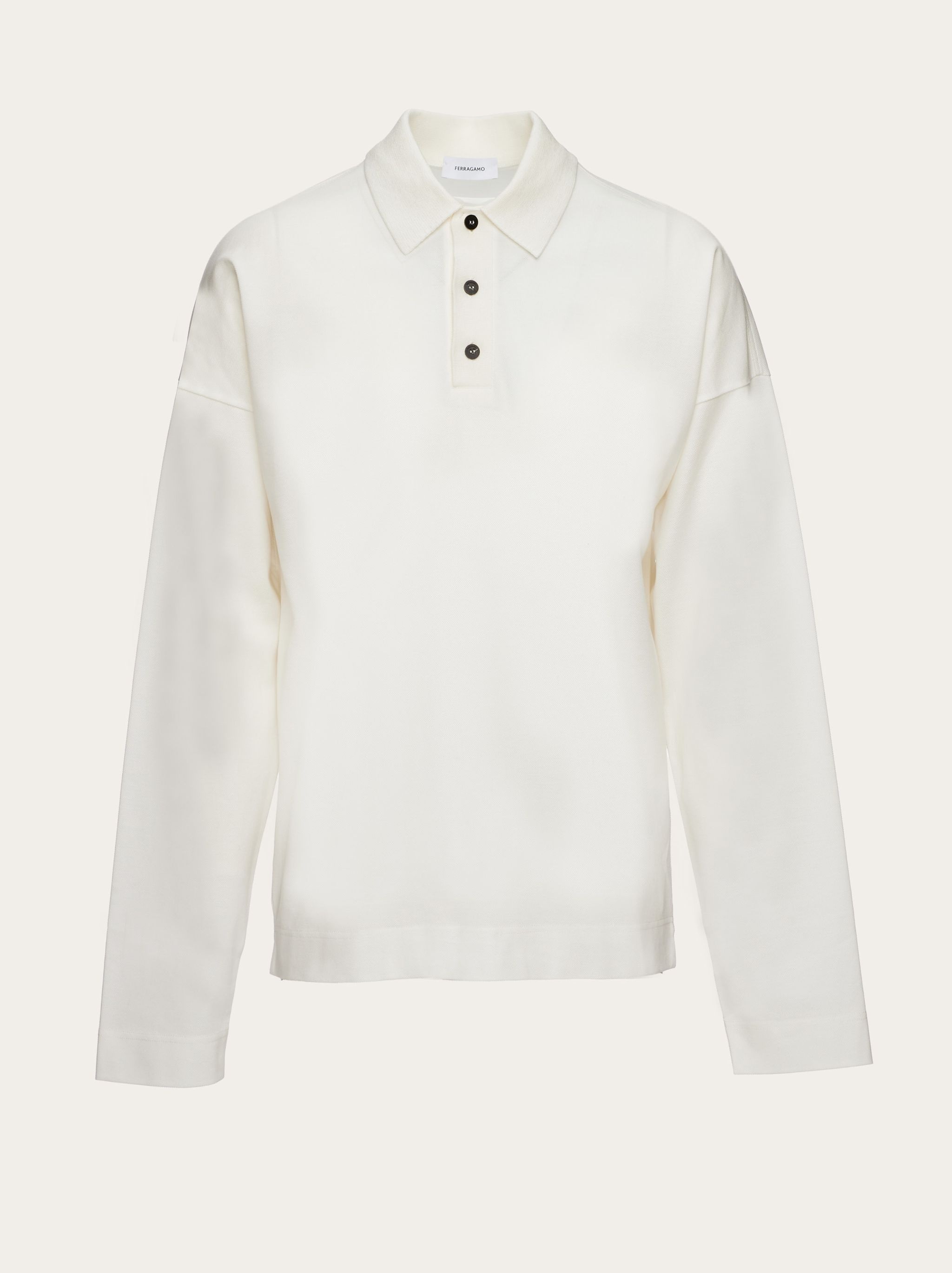 New everyday cool with a laid back attitude: long sleeved cotton pique polo with a soft, compact weave. Tonal rib knit collar with custom buttons, relaxed fit, drop shoulder. - Composition: 100% cotton - Product code: 122269 769939 - Made in ITALY