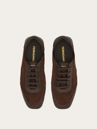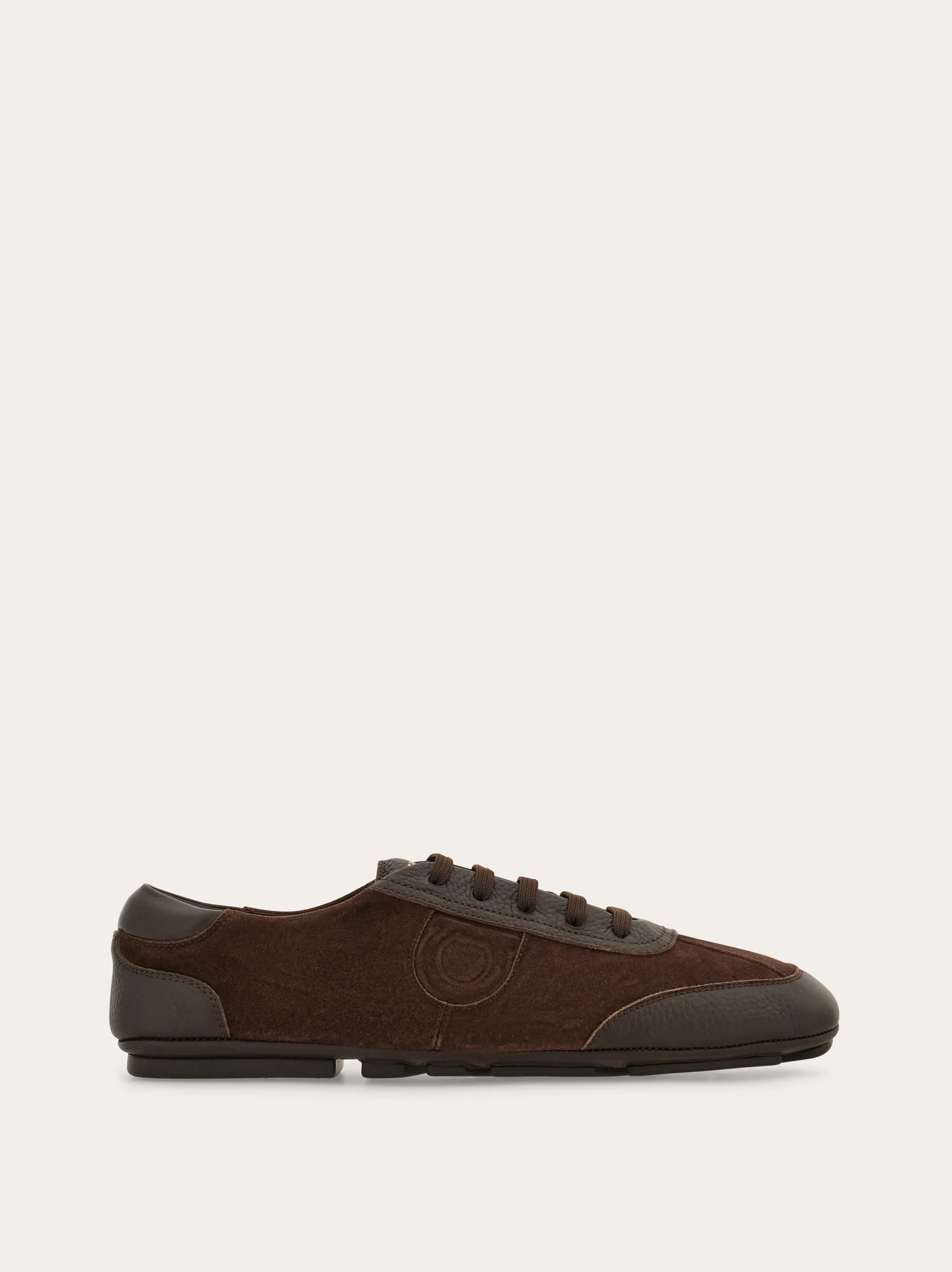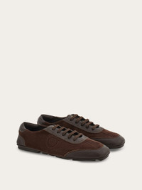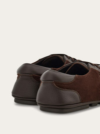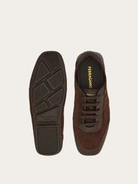 A contemporary take on the driver loafer featuring a sporty upper with elastic laces. It features a removable insole, reinforced under the heel for comfort, and a three-dimensional inlay on the side depicting the iconic Gancini motif. It's crafted using the tubular construction method, which involves meticulous hand-stitching and assembly, resulting in a flexible and lightweight silhouette. Rubber sole with custom tread. - Composition: calfskin and suede calfskin - Made in ITALY - Product code: 029848 784468