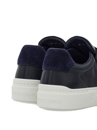 lace-up fastening sneakers Highlights - Blue - Leather upper - Suede details - Gancini detail to the side - Contrasting trims - Rubber sole Made in Italy Composition Outer: CALFSKIN 100% Lining: CALFSKIN 90%, Goat Skin 10% Sole: Rubber 100%