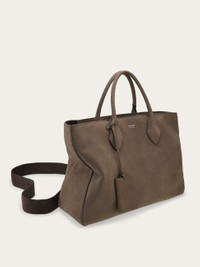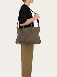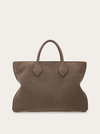 Large deconstructed tote with folded sides that create a star shape. Crafted from calfskin with a natural grain, it features deep covered handles so it can be carried as a handbag and shoulder bag. Spacious enough for a weekend getaway, it is complemented by the lining, zipped pocket and double address tag with key ring charm. Detachable and adjustable strap. - height 12.9 IN length 17.3 IN width 6.2 IN - Composition: nubuck - Large - Made in ITALY - Product code: 241410 782548