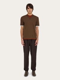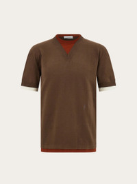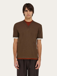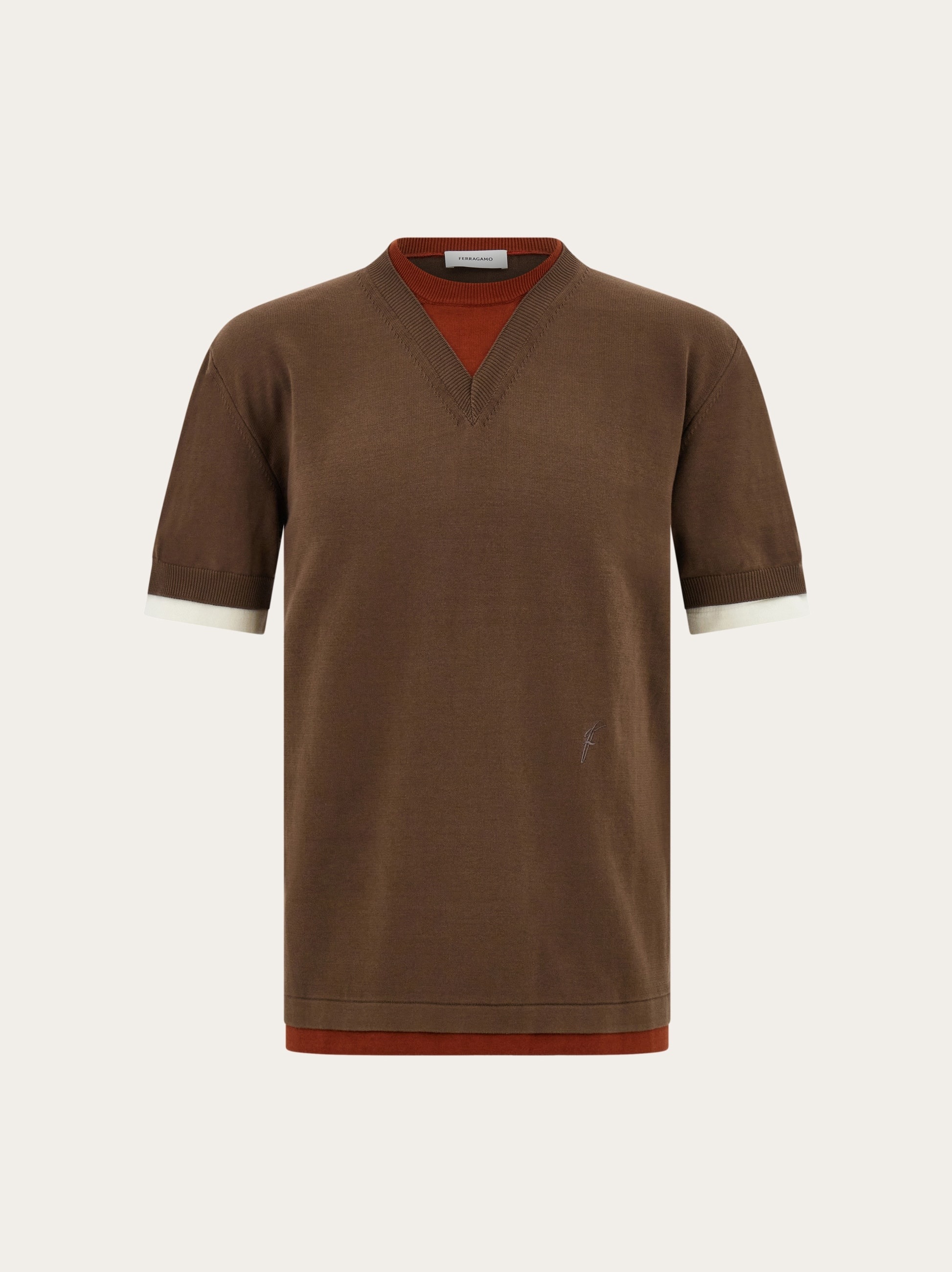 Contrasting layers give this knitted T-shirt a contemporary edge. Made of pure cotton, the mix of colors and cuts echo a laid back feel, with embroidered F at the side waist, and red cotton thread detail inside the collar. - Composition: 100% cotton - Made in ITALY - Product code: 122699 783251