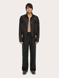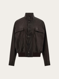 A contemporary interpretation of the classic leather blouson, with a sophisticated grainy texture. This surprisingly light cover up is detailed with a raised collar, rib knit accents on the hem, and custom buttons with signature diagonal eyelets. Flap pockets complete the design. Lined. - Composition: grainy leather - Made in ITALY - Product code: 144494 783255