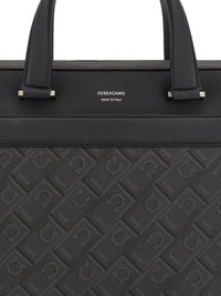 black leather all-over embossed logo print logo stamp to the front top zip fastening two rolled top handles adjustable detachable shoulder strap main compartment DETAILS Model ID 241723-781303001