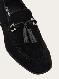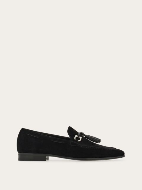 An almond tip and the softest suede confirm the uptown chic look of this new Ferragamo loafer. Raised stitching around the vamp creates the perfect frame for the Gancini bit with tassels that grace the instep. Custom leather sole. - Composition: suede - Made in ITALY - Product code: 029834 779874