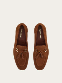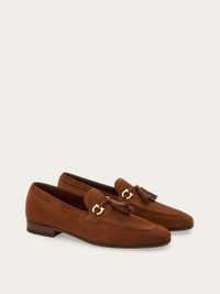 An almond tip and the softest suede confirm the uptown chic look of this new Ferragamo loafer. Raised stitching around the vamp creates the perfect frame for the Gancini bit with tassels that grace the instep. Custom leather sole. - Composition: suede - Made in ITALY - Product code: 029834 779854