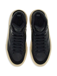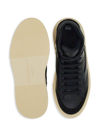 logo-debossed hi-top sneakers Highlights - Black/beige - Calf leather/lambskin - Logo-debossed tongue - Signature horsebit detail - Round toe - Front lace-up fastening - Pull-tab at the heel - Branded insole - Flat rubber sole - Ankle-length Made in Italy Composition Outer: CALFSKIN 100% Lining: Lamb Skin 67%, CALFSKIN 33% Sole: Rubber 100%
