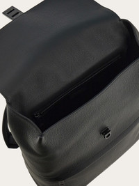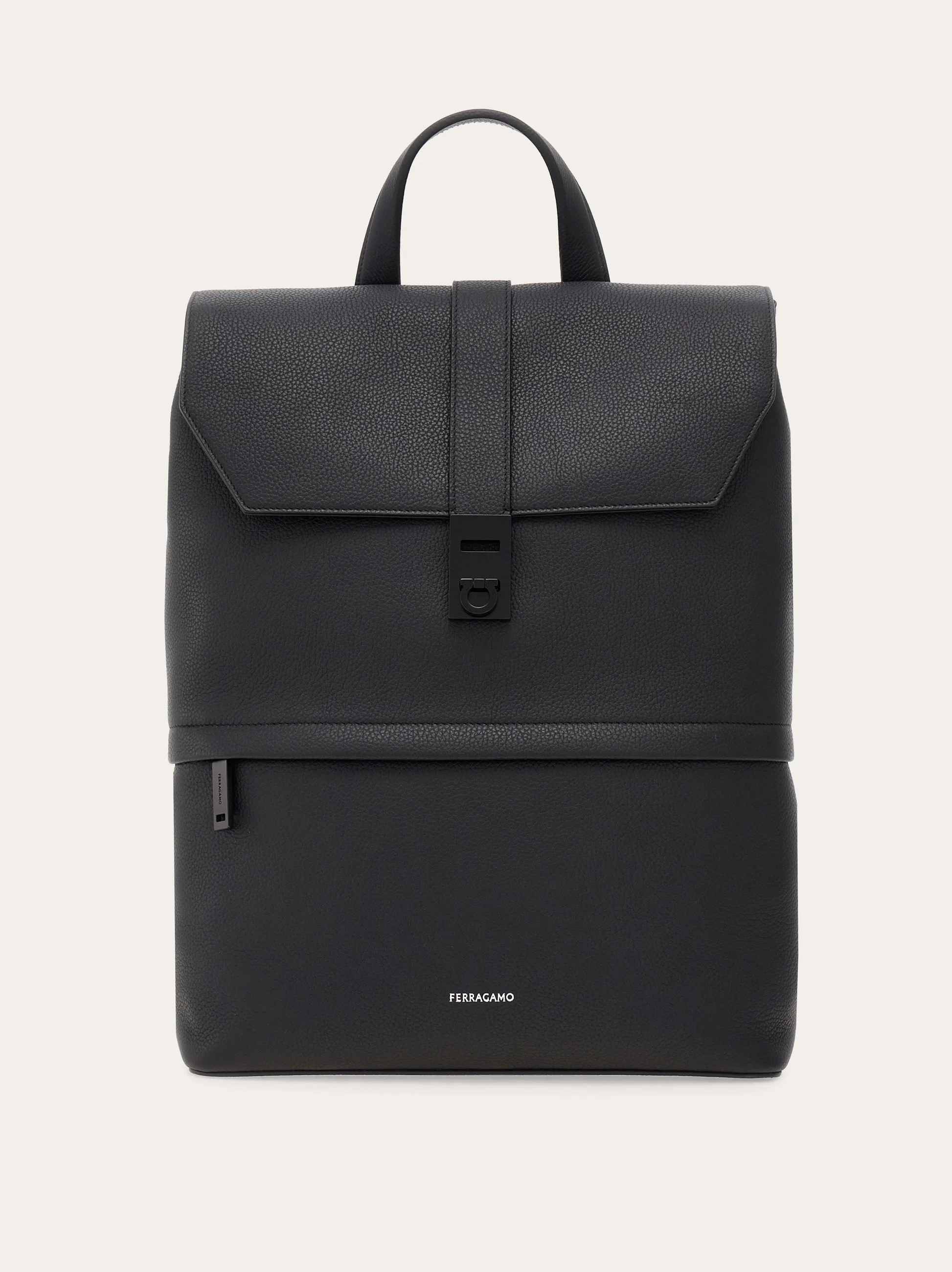 New metropolitan backpack crafted from soft hammered calfskin. The structure features a large zipped pocket on the bottom, while the flap with tonal painted Gancini buckle reveals a lined interior with dividers and pockets for electronic devices and personal items. The back is padded and breathable and features a belt for attaching it to your trolley, as well as adjustable shoulder straps in technical fabric. Silver logo on front. - height 16.1 IN length 11.8 IN width 4.7 IN - Composition: hammered calfskin - Made in ITALY - Product code: 241620 775178