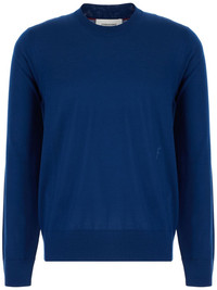 logo-embroidered jumper Highlights - Navy blue - Embroidered logo at the chest - Crew neck - Long sleeves Made in Italy Composition Virgin Wool 100%