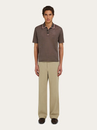 A minimal silhouette with an intriguing texture. The new polo shirt is made of cotton piquet with a slightly transparent finish. Contrasting color details on the collar evoke a preppy feel, with custom tonal signature embroidered on the chest. - Composition: 100% cotton - Made in ITALY - Product code: 144761 783881