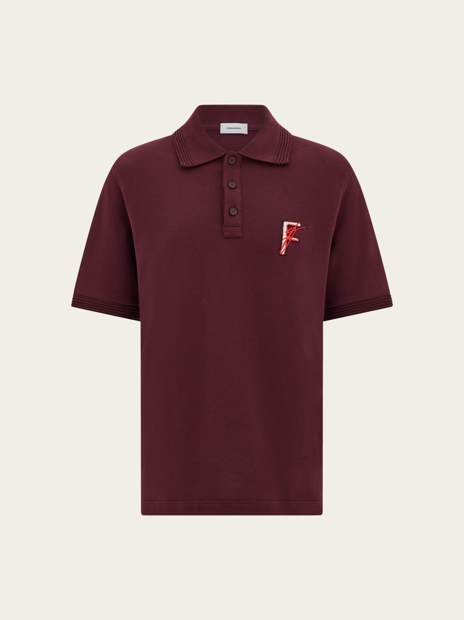 More than just a polo shirt when signed by Ferragamo. This gentlemen’s classic features an embroidered capital F on the chest with overlapping signature. Textbook details include a three button ribbed collar and rib trims on the sleeve. Made of cotton, it is ideal for leisure looks, or to add a relaxed feel to workwear. - Composition: 100% cotton - Made in ITALY - Product code: 122418 781040