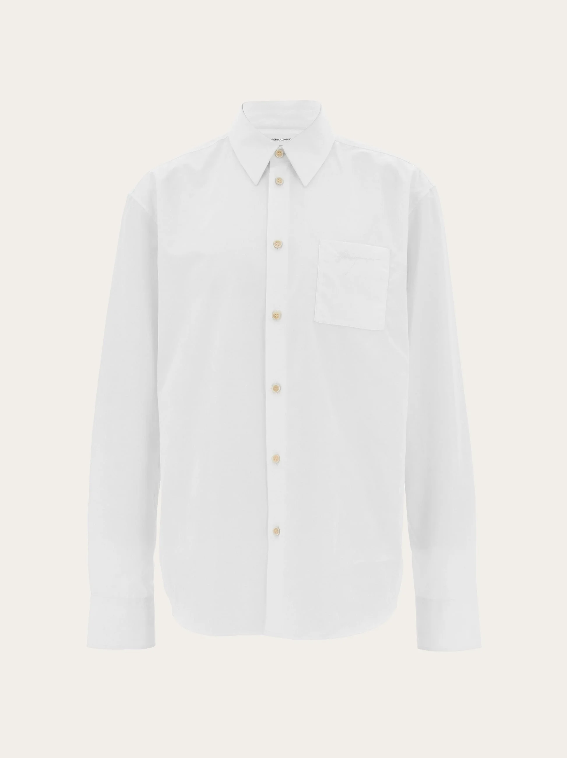 Made of easy care organic cotton poplin, this shirt is cut to a classic fit. A tonal embroidered F adds a touch of class to the breast pocket, complemented by the open placket and pleated back yoke. Lightweight and easy to wear, it has a rounded bottom hem for versatile styling. - Composition: 100% organic cotton - Made in ITALY - Product code: 144230 777500