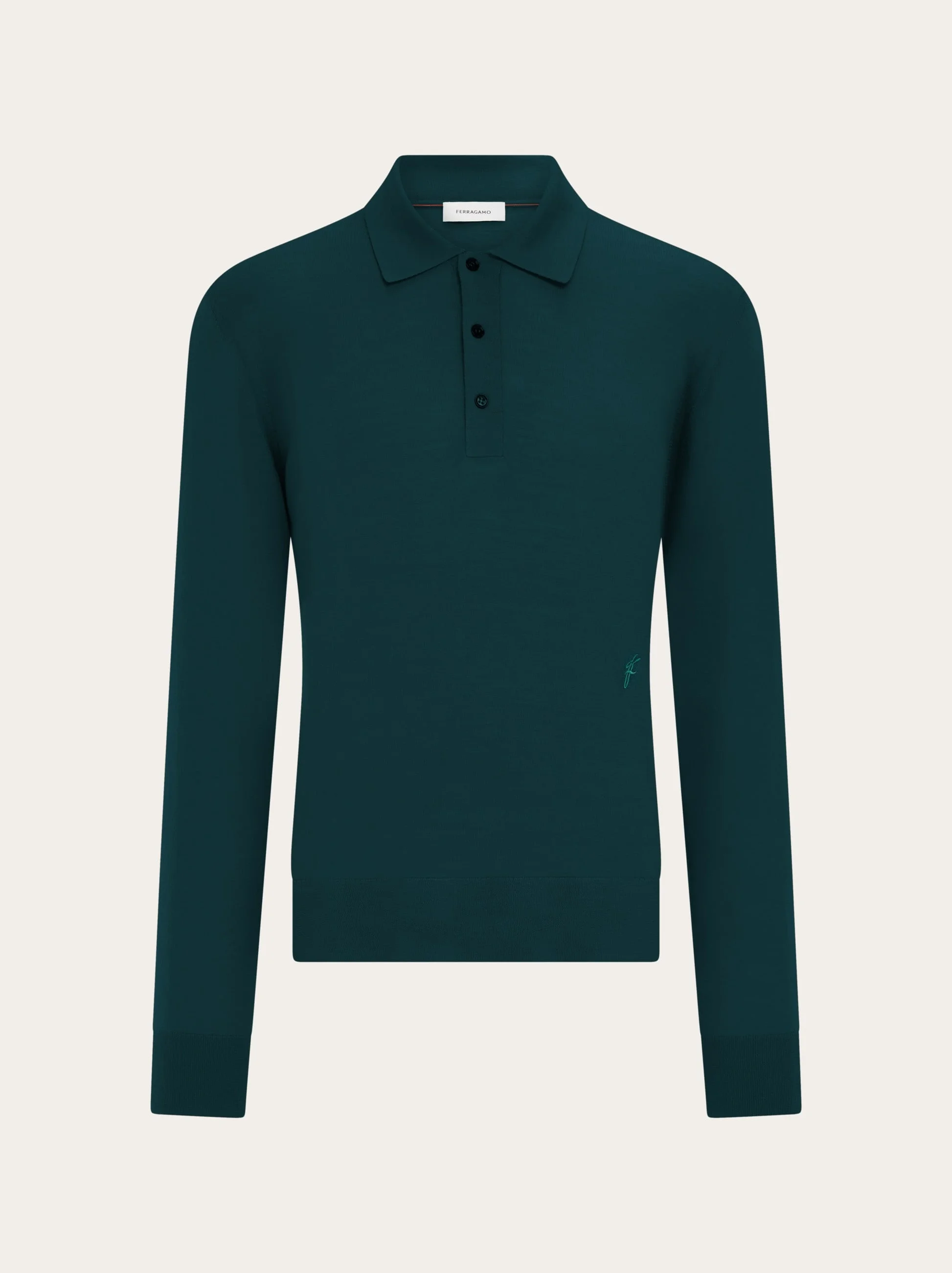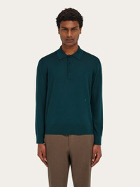 Wool polo shirt with long sleeves