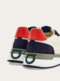 Inspired by running shoes, this casual sneaker offers a fresh perspective on sporty chic. The mix of waterproof fabric and suede gives the upper a dynamic feel. Detailed with covered eyelets and hidden lacing, the upper is completed by a three dimensional rubber logo on the side and ultra-light two tone rubber sole. Leather insole. - Composition: calfskin suede and fabric - Made in ITALY - Product code: 02A130 788689
