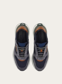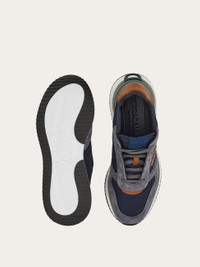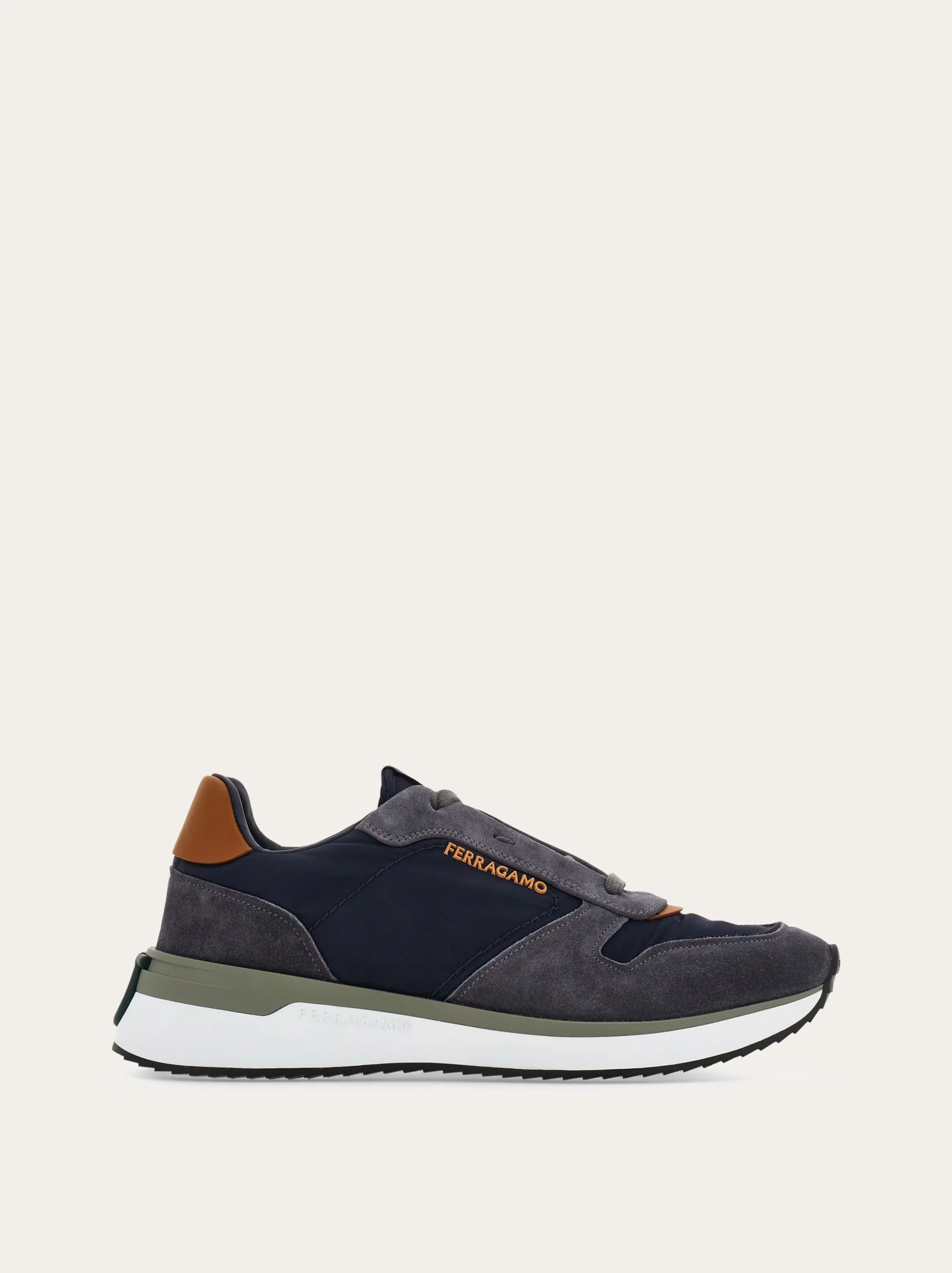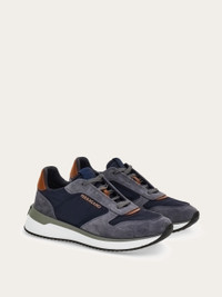 Inspired by running shoes, this casual sneaker offers a fresh perspective on sporty chic. The mix of waterproof fabric and suede gives the upper a dynamic feel. Detailed with covered eyelets and hidden lacing, the upper is completed by a three dimensional rubber logo on the side and ultra-light two tone rubber sole. Leather insole. - Composition: calfskin suede and fabric - Made in ITALY - Product code: 02A130 787533