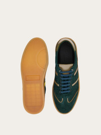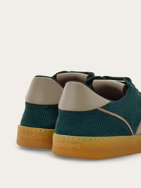This vintage-inspired sneaker features a low-top suede upper, expertly treated to resemble velvet corduroy. It's branded with a debossed Ferragamo signature on the side and set on a rubber sole with cupsole construction and custom tread. - Composition: calfskin and suede calfskin - Made in ITALY - Product code: 02A067 784896