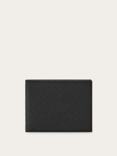 A cool evolution of the classic Ferragamo wallet, the smooth calfskin interior is functionally organized with slots, compartments and flat pockets. The exterior features an elegant embossed Ferragamo monogram pattern. - height 3.3 IN length 4.3 IN - Composition: smooth and embossed calfskin - Made in ITALY - Product code: 661565 780059