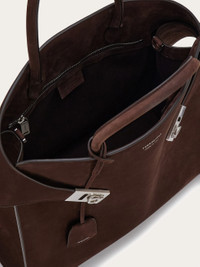 A new contemporary icon, the Hug silhouette is revised in the style of a capacious tote. Cut from rich nubuck with a soft texture, it features a tonal top handle with covered keyring fob, and textbook straps that wrap the sides and fasten at the front. Tonal Gancio buckles confirm an urban appeal. - height 15.3 IN length 14.9 IN width 5.9 IN - Composition: nubuck - Made in ITALY - Product code: 241666 784595