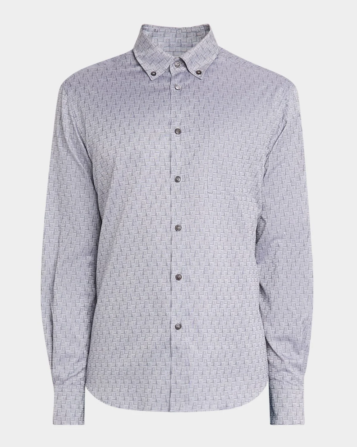 Micro Gancios form a unique geometric pattern on this breathable cotton sport shirt from Ferragamo. Buttondown collar Button placket Chest pocket Long sleeves Singlebutton cuffs Rounded hem Cotton Professional cleaning recommended Made in Italy