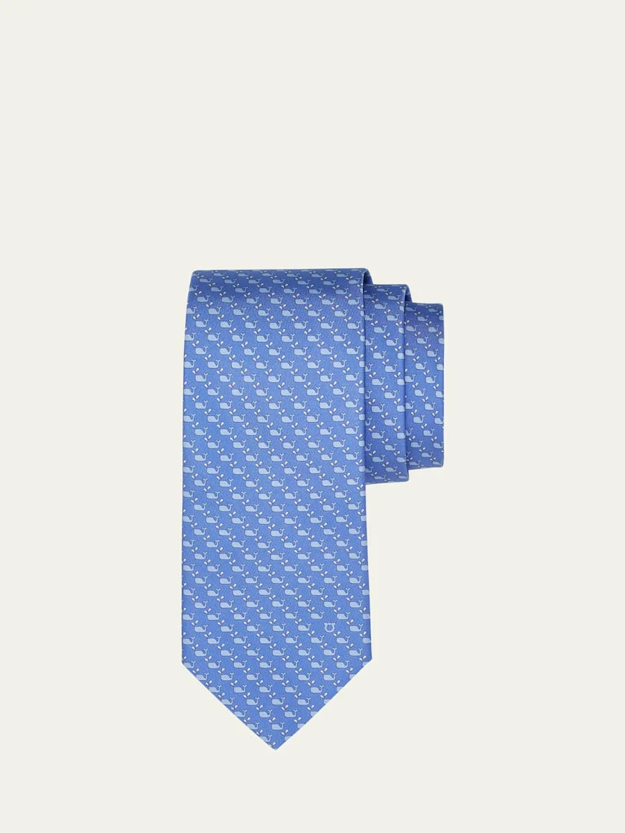 Ferragamo tie in silk and wool featuring a playful mini whale print Silk/wool Spot clean Made in Italy Online Inquiries: BGS21_NCZQU| Store Inquiries: #4984760