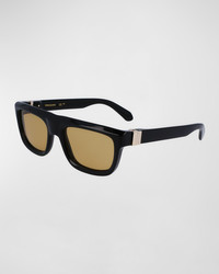 - Ferragamo "Prisma" square sunglasses in acetate - Lens/bridge/temple (in mm): - 56-21-145 - Solid-color lenses - Saddle nose bridge - Logo hardware on the temples - Curved temple tips - Acetate - Wipe clean - 100% UVA/UVB protection - Made in Italy - Proposition 65 warning for California residents
