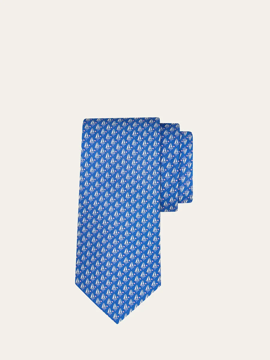 Ferragamo tie in silk and wool featuring a geometric mini sailboat print Silk/wool Spot clean Made in Italy Online Inquiries: BGS21_NCZPM| Store Inquiries: #4984719
