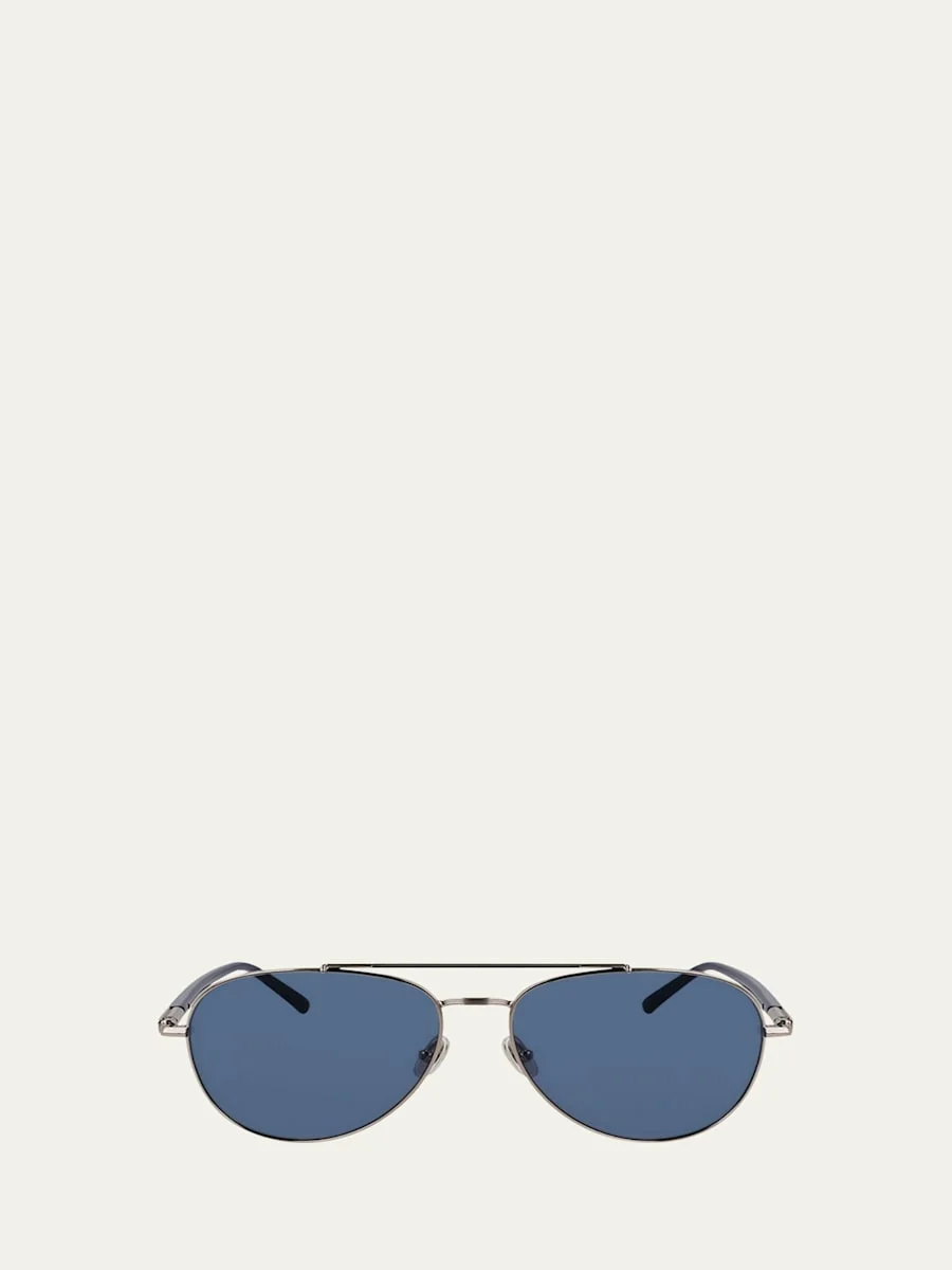 Ferragamo "SF316S Prisma" aviator sunglasses in metal Lens/bridge/temple (in mm): 61-16-145 Solid-color lenses Double-nose bridge Adjustable nose pads Engraved logo on the temples Thin arms Angular temple tips Metal Wipe clean 100% UVA/UVB protection Made in Italy Proposition 65 warning for California residents Online Inquiries: BGS21_NCJUU| Store Inquiries: #4895512