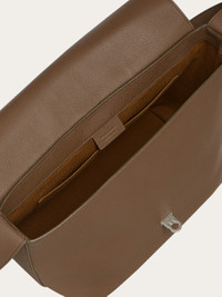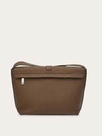 Oversize messenger bag featuring a geometric structure and sections crafted in hammered calfskin. The front flap fastens with the satin palladium Gancini detail, while the suede-lined interior is complemented by two large flat pockets. The flat pocket on the back adds functionality to the design. Carry it as a shoulder or crossbody bag with the adjustable leather strap. Base with 3D grooving that acts as feet studs. - height 9.4 IN length 11.0 IN width 6.4 IN - Composition: hammered calfskin - Made in ITALY - Product code: 241401 769762