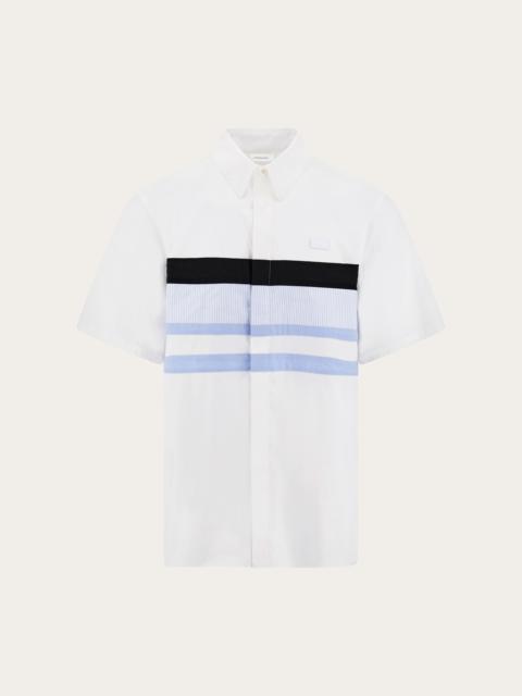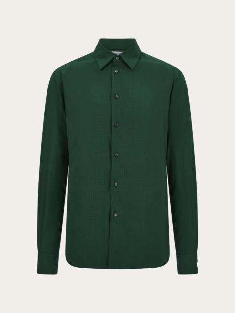 An essential part of any gentlemen's wardrobe, this cotton poplin shirt features a refined micro print featuring the iconic Ferragamo Monogram. The construction is classic, with a regular fit, back yoke, and rounded hem. Tone on tone button closure. - Composition: 100% cotton - Made in ITALY - Product code: 144833 785044