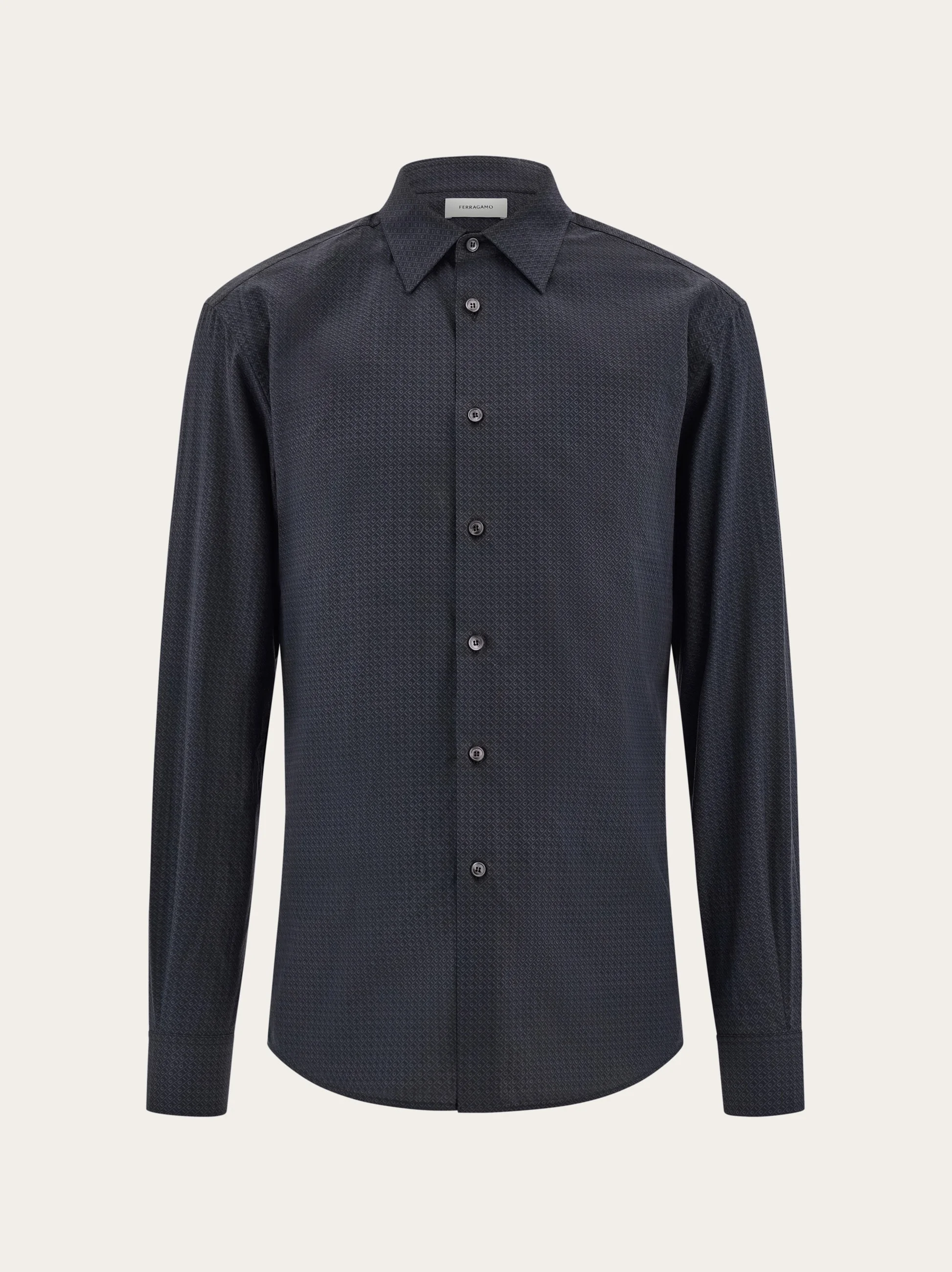 An essential part of any gentlemen's wardrobe, this cotton poplin shirt features an elegant micro print inspired by traditional tie patterns. The construction is classic, with a regular fit, back yoke, and rounded hem. Tone on tone button closure. - Composition: 100% cotton - Made in ITALY - Product code: 144305 780348