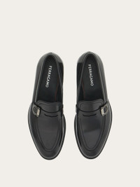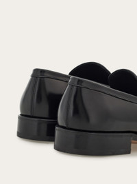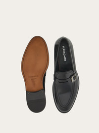 The contemporary evolution of penny loafers, with a brushed calfskin upper and a round toe emphasized by the double topstitching on the apron. The leather saddle detail is decorated by the lacquered Gancini accent on the side. This style is finished off by the insole with red stitching, the stitched welt and the double leather sole with open channel. These shoes feature the “Blake” construction: this entails the sole being applied through a series of steps that are almost entirely done by hand, by expert craftsmen who are highly specialized. - Composition: calfskin - Made in ITALY - Product code: 029111 774508